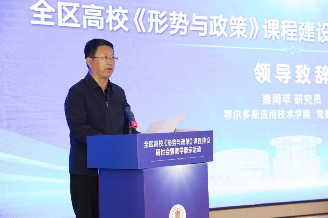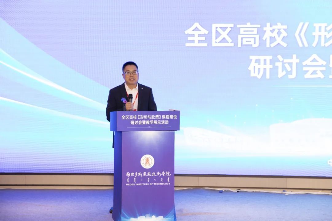本次會議由內蒙古自治區教育廳指導、內蒙古自治區高校思想政治理論課教學指導委員會“形勢與政策”教學指導分委員會主辦、鄂爾多斯應用技術學院承辦、高等教育出版社及內蒙古超星信息技術有限公司協辦,全面展示了全區《形勢與政策》課程建設的最新成果,為廣大形勢與政策課教師搭建起溝通交流學習的平臺,對加強“形勢與政策”課程建設、提升教師教學能力、提高課程質量、推進思政課教師“大練兵”具有積極意義。
