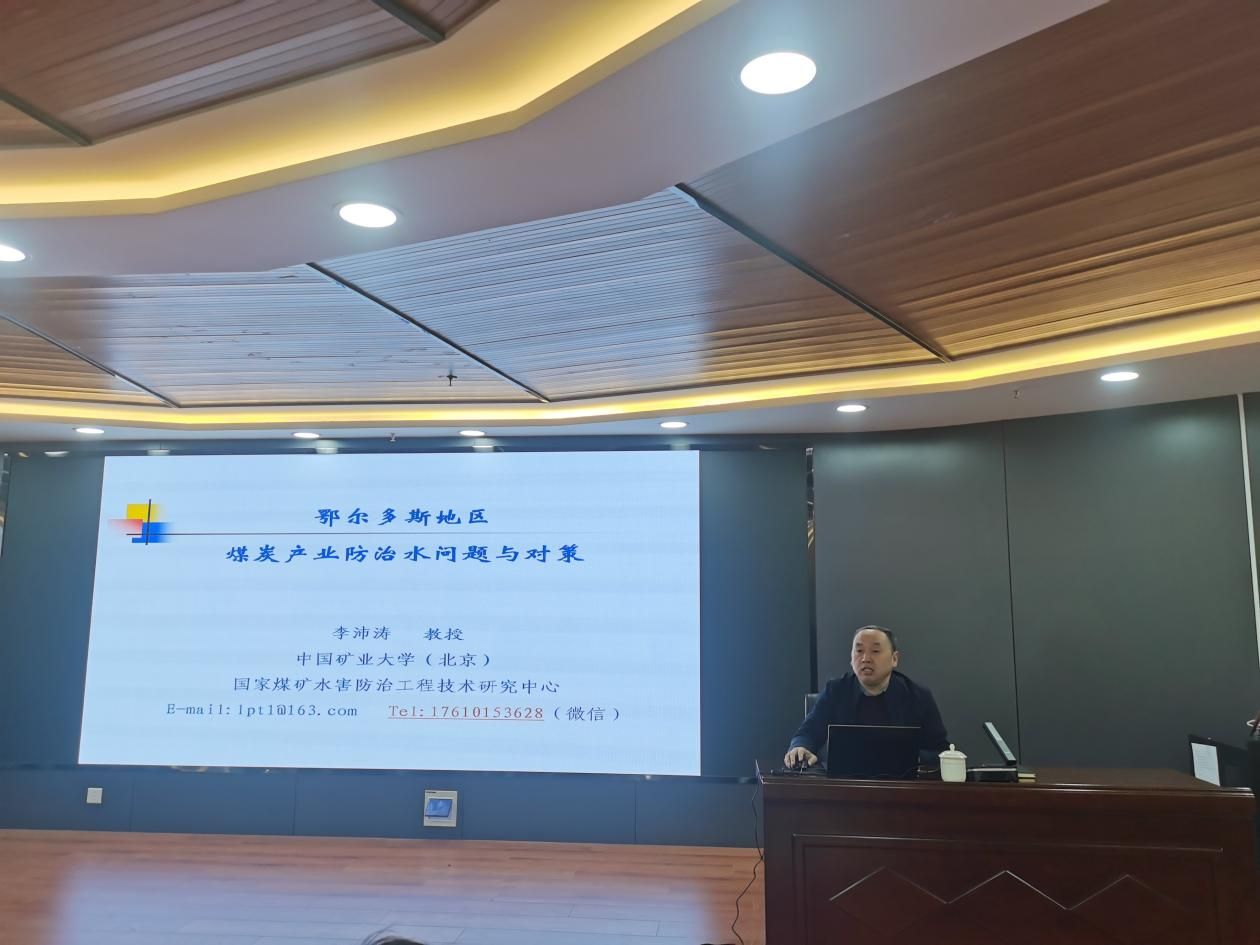 李沛濤教授從鄂爾多斯炭產(chǎn)業(yè)面臨的挑戰(zhàn)、鄂爾多斯煤田地質(zhì)概況、礦井水害及防治水工作的基本知識(shí)、煤水雙資源協(xié)調(diào)開采以及研究方向五個(gè)角度展開講座。現(xiàn)場師生通過聆聽講座與現(xiàn)場交流,紛紛表示此次活動(dòng)拓寬了學(xué)術(shù)視野,對(duì)鄂爾多斯煤礦開采與礦區(qū)治理有了更深入地了解。