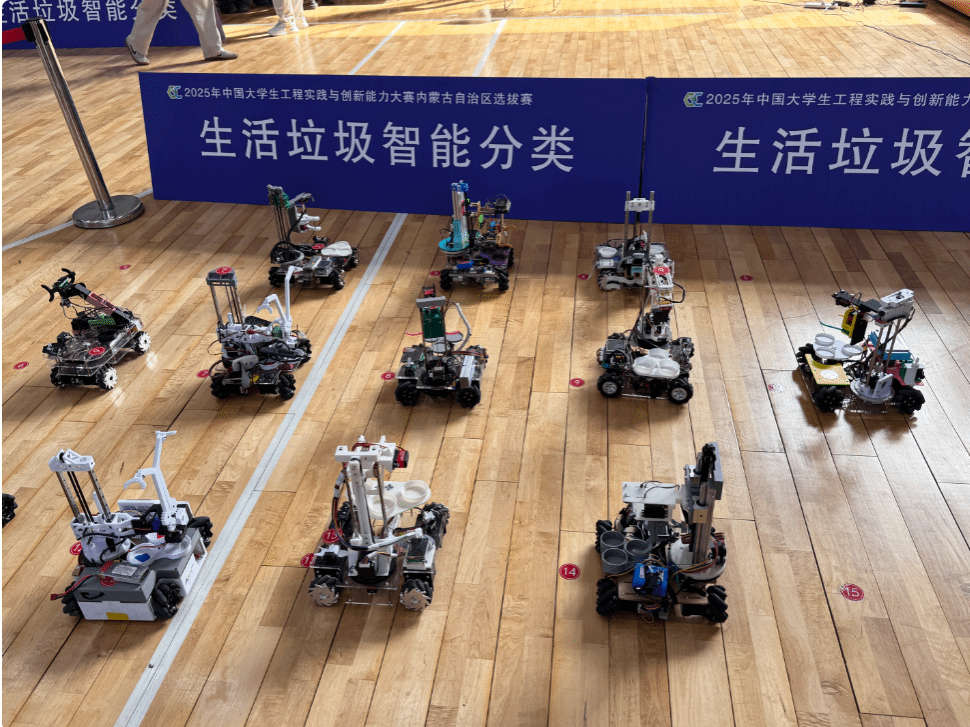 大賽是教育部高教司發(fā)文舉辦的三大賽事之一,每?jī)赡昱e行一次,以 “ 交叉融合工程創(chuàng)新育新質(zhì),立德樹(shù)人強(qiáng)國(guó)建設(shè)勇?lián)?dāng)” 為主題,設(shè)置 “新能源車”“智能 +”“虛擬仿真” 三大賽道。包含太陽(yáng)能電動(dòng)車、溫差能電動(dòng)車、智能物流搬運(yùn)、智能垃圾分類、智能救援、企業(yè)運(yùn)營(yíng)仿真六個(gè)項(xiàng)目,吸引了來(lái)自內(nèi)蒙古 8 所高校的104支代表隊(duì)、共計(jì)382名優(yōu)秀選手同場(chǎng)競(jìng)技,各展風(fēng)采。