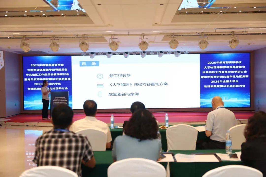 本次研討會聚焦華北地區高校物理教學與實驗競賽的創新與發展,涵蓋大學物理課程教學改革、青年教師教學質量優化、實驗教學資源整合三大主題。清華大學王青教授、北京大學朱華星教授分別圍繞AI時代的物理教育實踐與思考作專題報告。南開大學宋峰教授和我校門克內木樂教授分別圍繞“青年教師講課比賽,助力青年教師成長”和“新工科背景下大學物理課程內容重構探索”作學術報告。