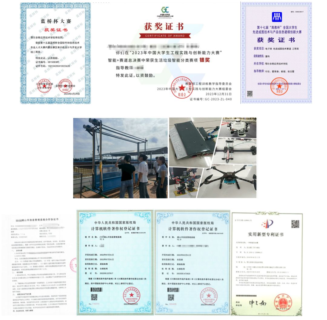 (2)學(xué)生工程素養(yǎng)顯著提高。近3年以來,學(xué)生參與學(xué)科競賽人數(shù)上漲明顯,獲獎(jiǎng)的比例也逐年增加。部分成果見下圖7所示。