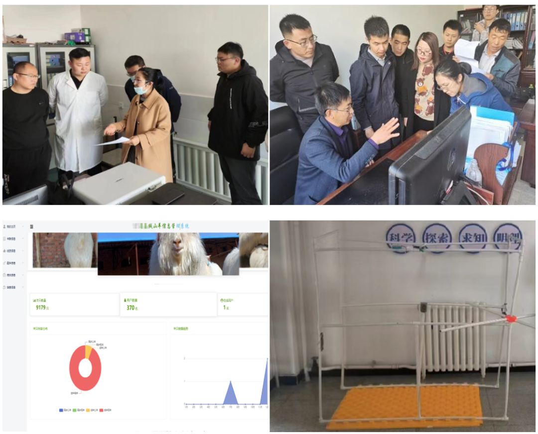 (3)專業(yè)使命感大幅提升。近兩年來得益于課程實(shí)施的項(xiàng)目式實(shí)踐,吸引了近30名對(duì)技術(shù)助農(nóng)感興趣的學(xué)生,目前已經(jīng)組建兩支學(xué)生團(tuán)隊(duì),分別為絨山羊養(yǎng)殖基地研發(fā)了絨山羊信息管理系統(tǒng)(蒙ICP備2022001865號(hào))及無接觸式絨山羊體尺測量裝置(實(shí)驗(yàn)室樣品),組織三下鄉(xiāng)活動(dòng)2次,完成技術(shù)講座及科學(xué)技術(shù)宣傳講座2次,產(chǎn)生了較好的社會(huì)效益,見下圖8。