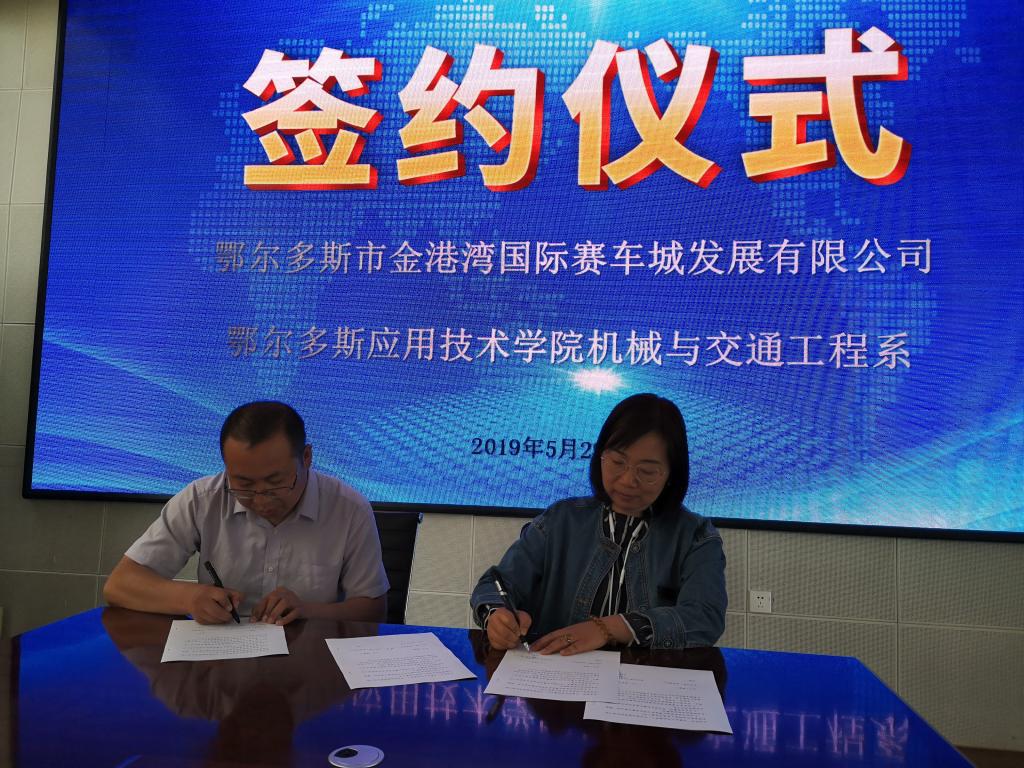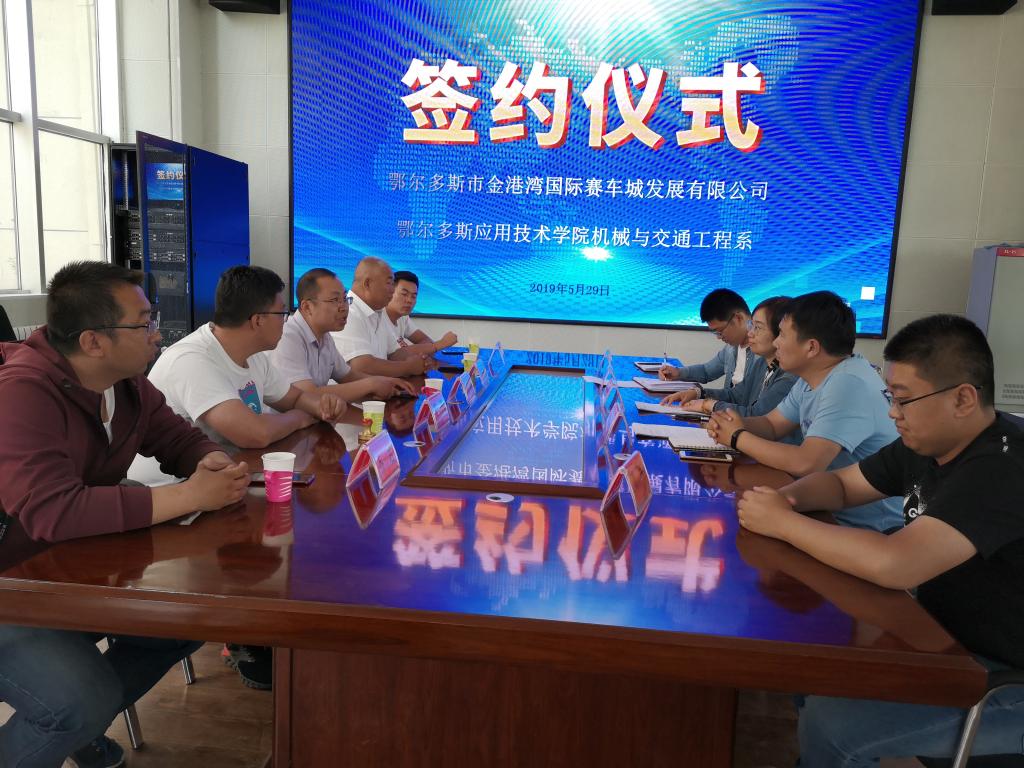 2019年5月29日下午,鄂爾多斯市金港灣國際賽車城發展有限公司總經理蘇紅、副總經理徐文華等一行五人到訪我院機械與交通工程系進行考察交流,并簽訂了合作協議。