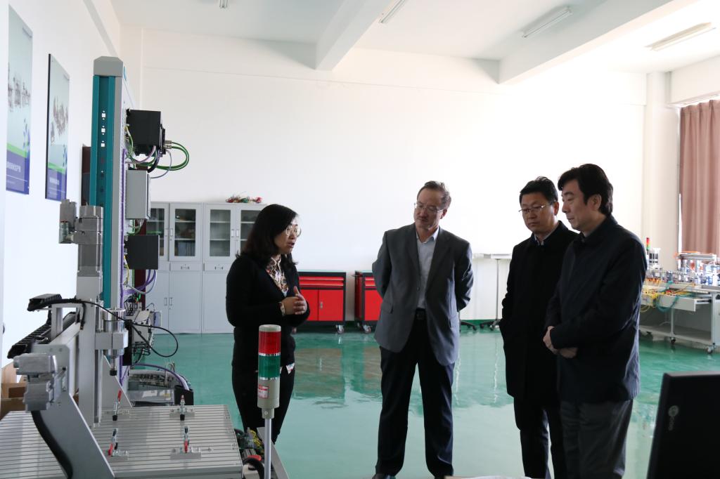 4月2日上午,教育部學校發展規劃中心“中英技能項目”聯合辦公室負責人陳躍一行3人來我院考察,學院黨委副書記秦聞蘋,黨委宣傳部、機械與交通工程系、土木工程系等負責人陪同考察。陳躍一行參觀考察了我院智能制造實驗實訓中心、土木工程系實驗室,對我院立足鄂爾多斯鄂爾多斯經濟產業發展需求培養應用型、技術技能型人才的辦學理念表示贊同。