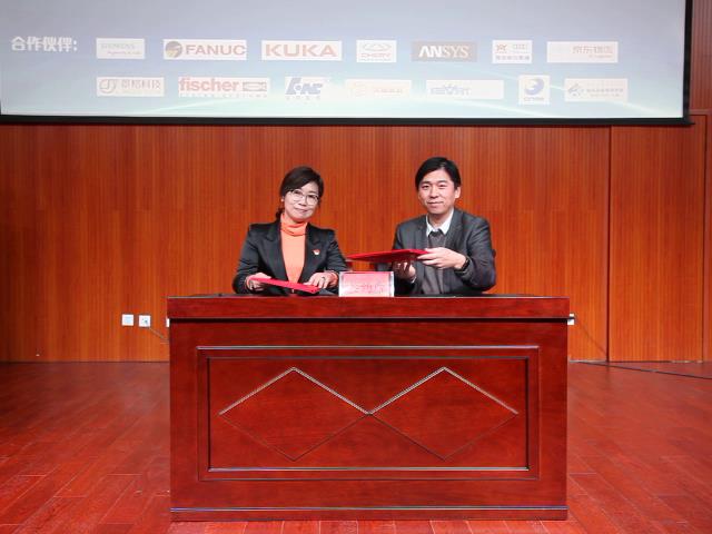 市人大常委會副主任、科技局局長王評、副市長麻永杰、學校黨委書記安勝利、校長姚德共同為智能制造實驗實訓中心揭牌。華中數(shù)控、西門子、上海景格科技、奇瑞汽車、浙江天煌科技、包頭市設備管理協(xié)會等企業(yè)、機構與學校簽訂了校企合作協(xié)議。