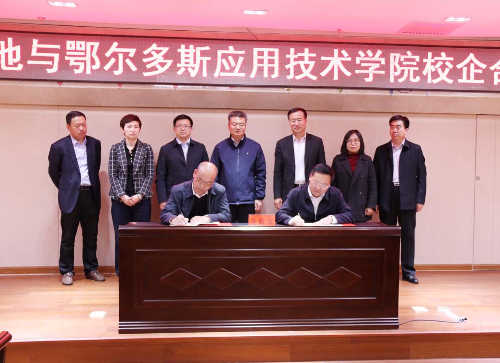 2019年3月27日下午,我院與鄂爾多斯裝備制造基地校企合作簽約暨基地授牌儀式在鄂爾多斯裝備制造基地管委會二樓會議室舉行。學院黨委書記侯晨曦、黨委副書記、院長姚德、副院長孫志強出席簽約儀式,學院相關部門及系部負責人參加。出席簽約儀式鄂爾多斯裝備制造基地的領導有黨工委書記張良、黨工委副書記、管委會主任李向義、黨工委副書記焦晶、管委會副主任劉翹儒、高碧以及管委會相關部門負責人。管委會主任李向義主持簽約暨基地授牌儀式。