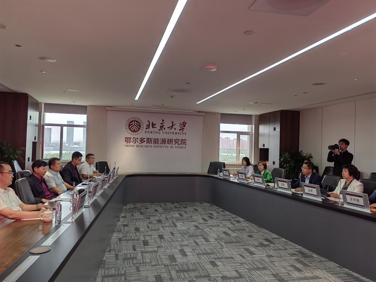 在考察北京大學鄂爾多斯能源研究院時,宮箭一行參觀了研究院展廳,認真了解建院歷程、科研項目和研發團隊等情況,并與研究院領導進行了座談。在座談會上,雙方就科研項目合作、科研設備共享、人才培養、高層次人才引進等方面進行了深入交流,并搭成廣泛共識。