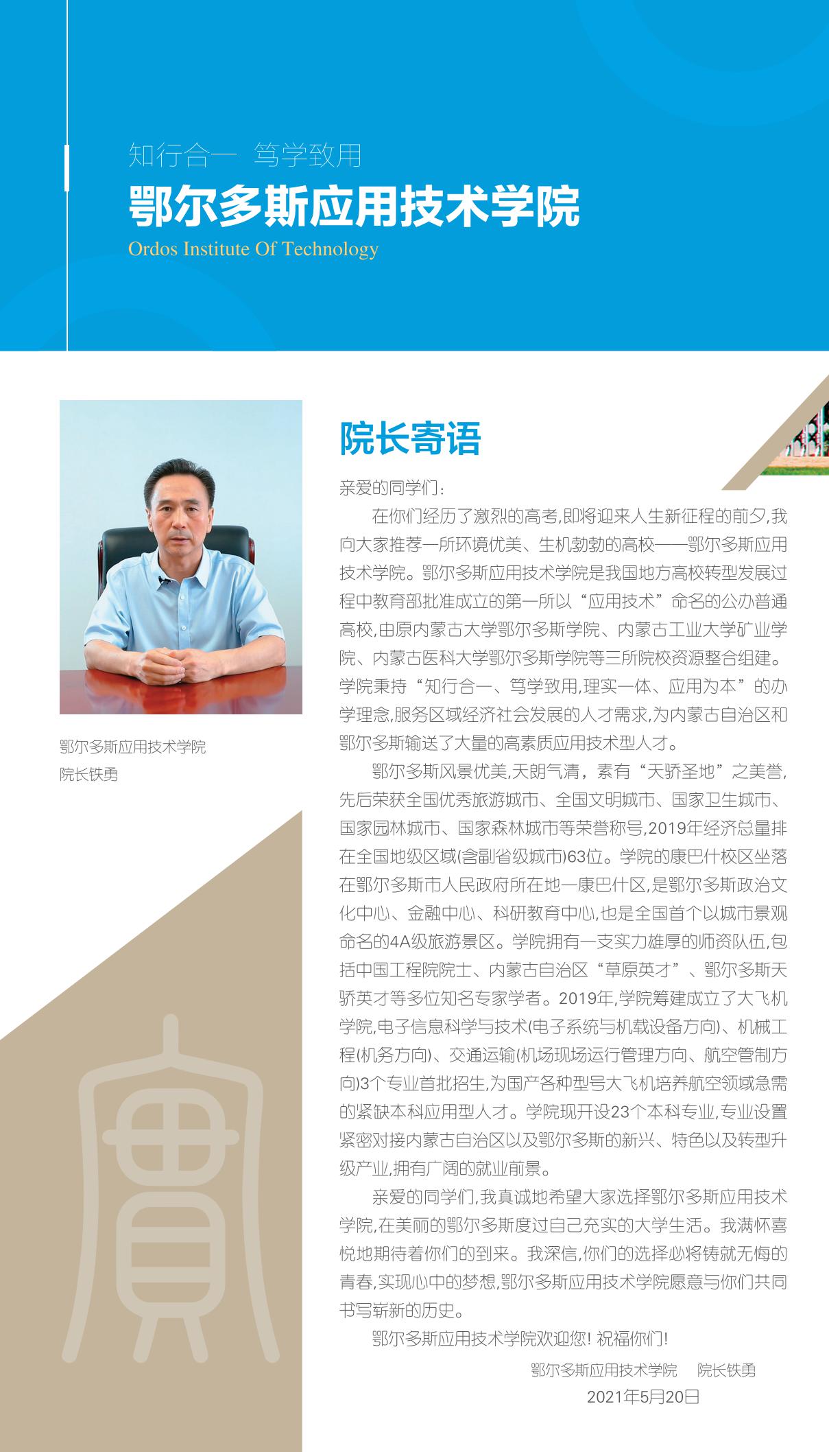 鄂爾多斯應用技術學院2021年招生簡章