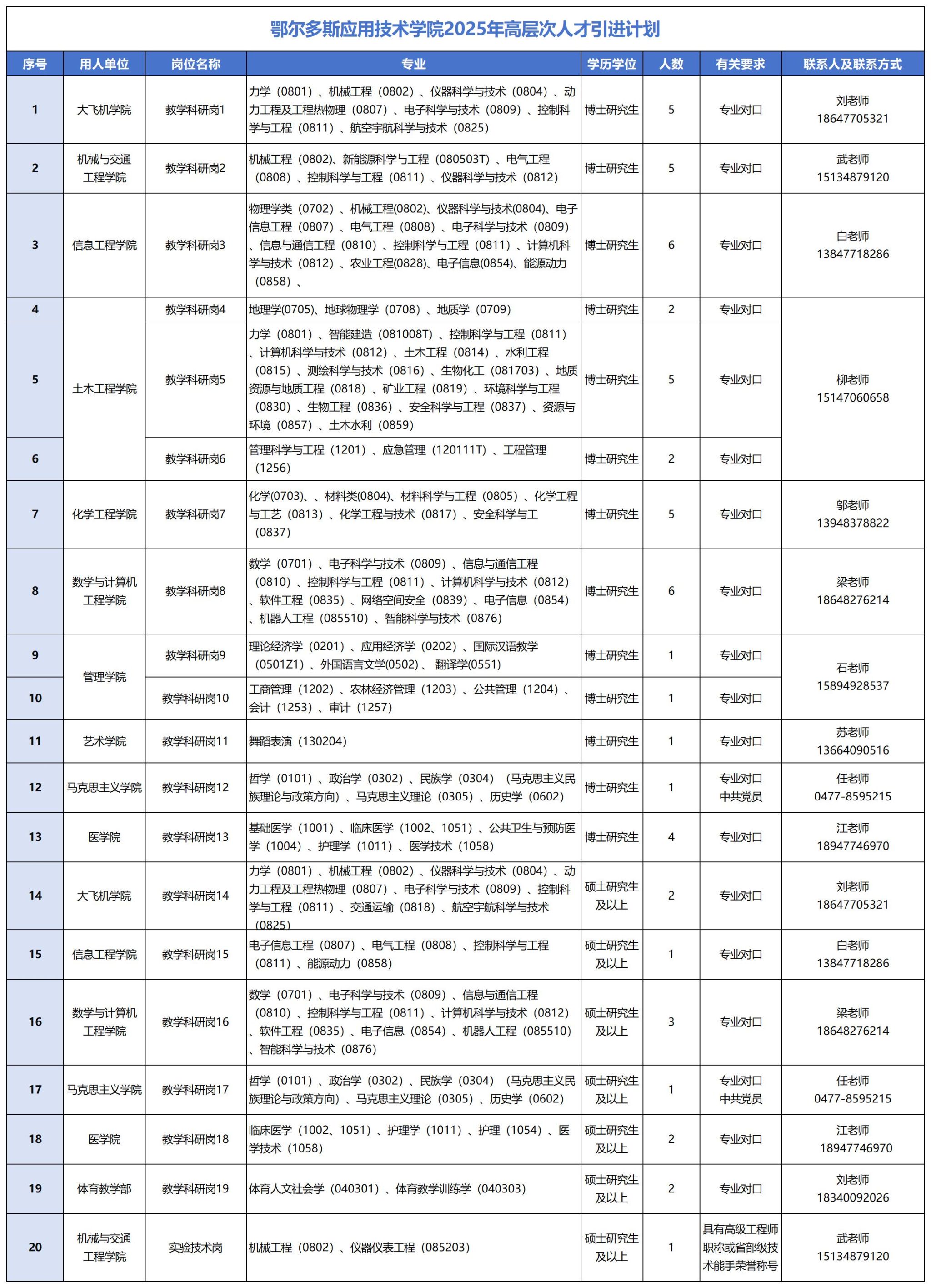 聯(lián)系人:高老師0477-8591333地址:鄂爾多斯市康巴什區(qū)鄂爾多斯大街東1號郵箱:eyyrsc@163.com(應(yīng)聘者請下載填寫《個人簡歷模板》投遞郵箱,郵件標(biāo)題:應(yīng)聘單位名稱+姓名+學(xué)歷+專業(yè))