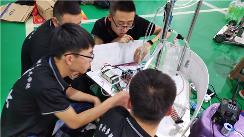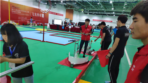 此次大賽以“飛龍繡球”為主題,參賽學生應用機械制圖、電子電路、單片機、傳感技術、自動控制、圖像處理、計算機編程語言、電機拖動等多門學科知識,設計自動機器人。為更好地完成比賽動作,學生自主設計機器人身體結構,焊接制作機器人。比賽過程中,兩臺機器人分工合作,在3分鐘內完成投擲繡球、穿過圓環、實現“飛龍”等任務。經過預選賽、小組循環賽和復賽后,學校代表隊最終獲得三等獎的好成績。