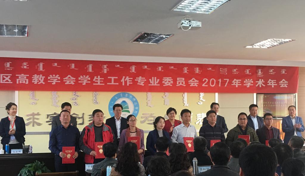 會上,靖治、任淑芳獲得自治區心理健康教育優秀工作者榮譽稱號;靖治提交的論文《在校大學生社會支持及其與人格特征的關系》《學生的媒介能力與道德認知水平之間的聯系》分別獲得心理健康教育專業委員會2017年學術年會優秀論文二等獎和三等獎,論文《內蒙古高校大學生社會支持及其與人格特征的關系》獲得學生工作專業委員會2017年學術年會優秀論文二等獎;李偉提交的論文《思想政治教育思想視角下的大學生網貸研究》獲得學生工作專業委員會2017年學術年會優秀論文三等獎;蘇丹、趙冰、丁文彬提交的論文優秀獎。
