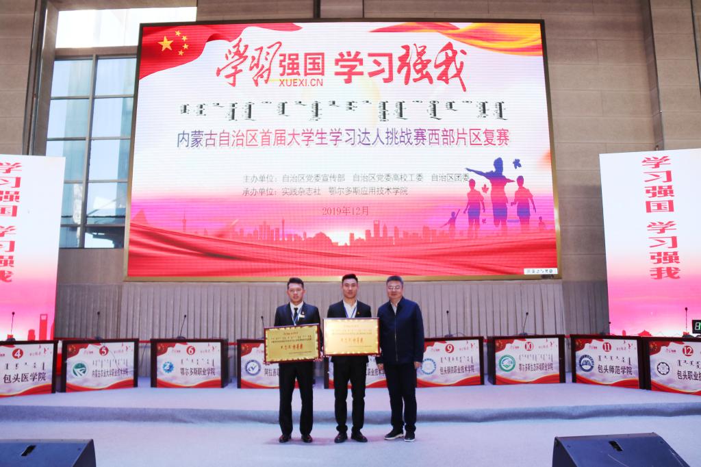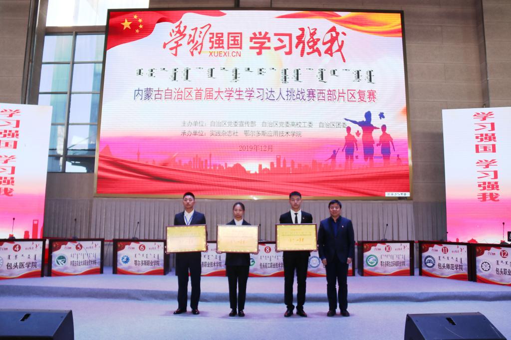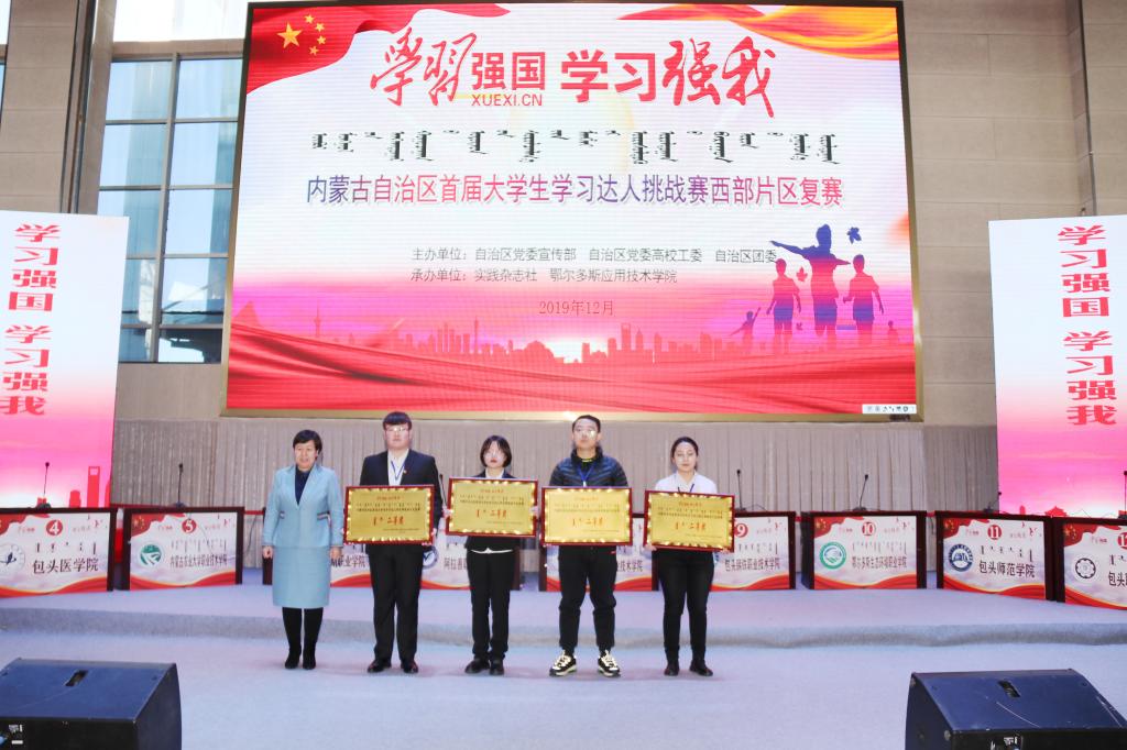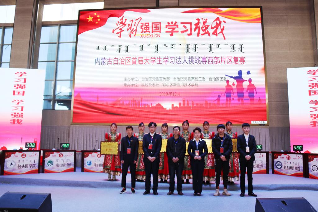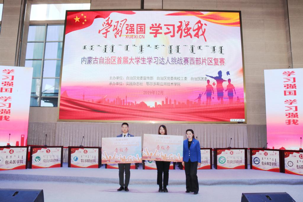 12月4日,內蒙古自治區首屆“學習強國·學習強我”大學生學習達人挑戰賽西部片區復賽在鄂爾多斯應用技術學院康巴什校區體育館舉行。本次大賽由內蒙古自治區黨委宣傳部,自治區黨委高校工委,自治區團委聯合主辦,由實踐雜志社與鄂爾多斯應用技術學院共同承辦。旨在引導青年學生深入學習習近平新時代中國特色社會主義思想,提高思想政治素質,堅定理想信念,成長為合格的社會主義建設者和接班人。