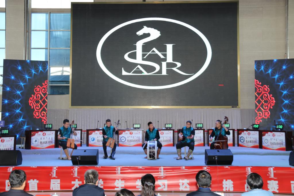 答題環節結束后,我院藝術系教師巴音布拉格演唱了歌曲《草原上升起不落的太陽》,藝術系hasar原生態組合進行了節目《馬背民族》的表演,精彩的演出讓賽場內緊張的氣氛得到了緩解。