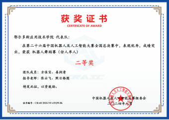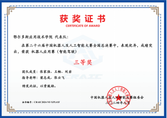 在日前結束的第二十六屆中國機器人及人工智能大賽全國總決賽中,我校選派的三支隊伍與清華大學、國防科技大學、哈爾濱工業大學等700多所高校5400多支參賽隊伍同臺競技。最終,由數學與計算機工程系教師張云飛、照日格圖、梁志成指導的3支隊伍獲得機器人舞蹈賽(仿人單人)全國二等獎1項,機器人應用賽(智能駕駛)全國三等獎2項。