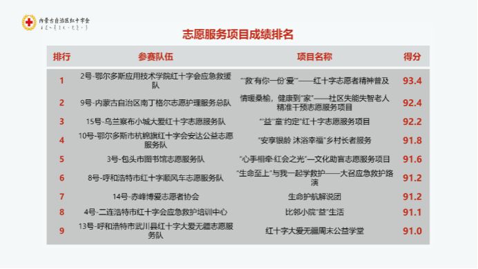11月18日—20日,2024年全區紅十字會系統志愿服務項目大賽在呼和浩特市舉辦。我校選送的《“救”有你一份“愛”—紅十字志愿者精神普及志愿服務》以總分第一的優異成績獲得2024年全區紅十字會系統志愿服務項目大賽一類支持項目。