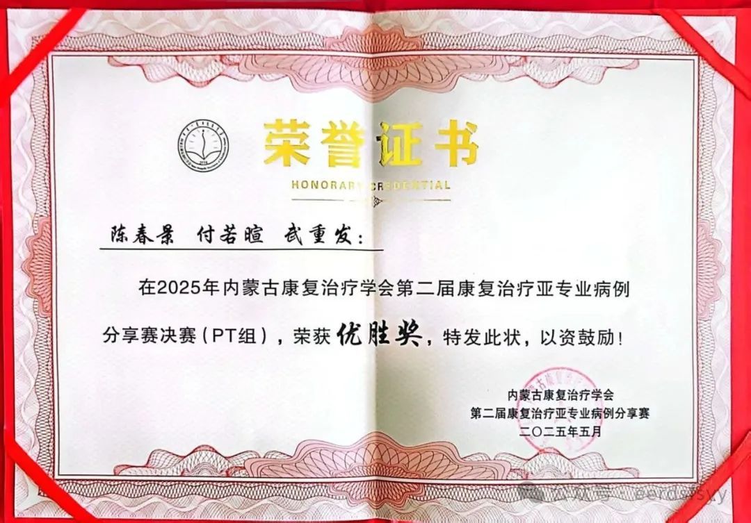 此次大賽佳績的取得,標志著我校附屬醫院成人康復科實現了從無到有的跨越,彰顯了團隊深耕醫療、精研技藝的學術底蘊,以及敬佑生命、守正創新的職業擔當。同時,科室會緊跟內蒙古康復學會的步伐,不斷完善自身技術和人才培養體系,積極學習相關技術,關注行業前沿動態,為提升區域康復醫療水平、守護群眾健康福祉貢獻更大力量。