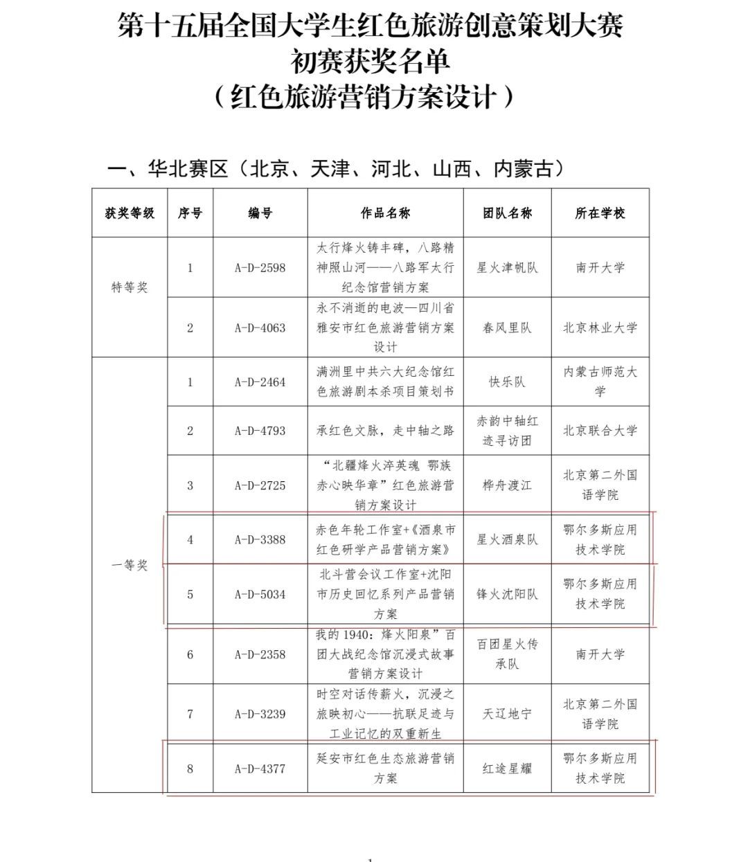 日前,第十五屆全國大學生紅色旅游創(chuàng)意策劃大賽初賽獲獎及入圍決賽名單公布。我校管理學院選派9支參賽隊伍與全國1001所高校6002支隊伍同臺競技,其中8支隊伍脫穎而出,榮獲華北賽區(qū)一等獎5項、二等獎3項,刷新我校參加該賽事的歷史記錄。