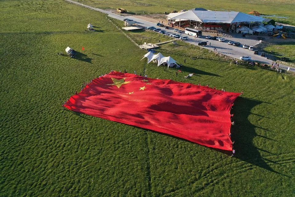 當(dāng)1200平米的國旗在草原上徐徐展開,當(dāng)學(xué)生和景區(qū)游客、景區(qū)工作人員合唱的《愛我中華》響徹烏審草原時(shí),強(qiáng)烈的民族自豪感油然而生,五十六個(gè)民族一家親的感情深深感染著現(xiàn)場每個(gè)人。
