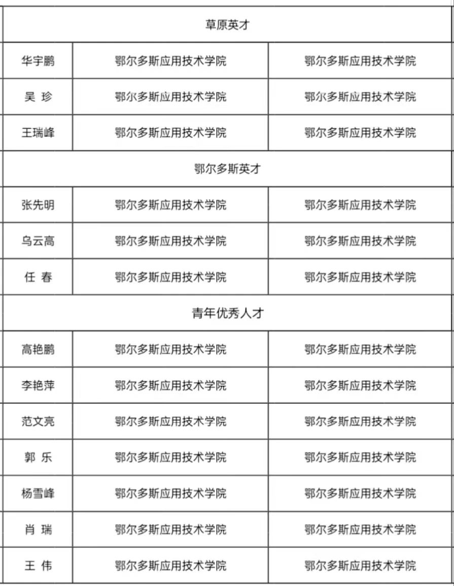 今天,2022年度鄂爾多斯市鄉村振興專家人才工作站、鄂爾多斯市產業創新創業人才團隊、高層次人才和人才團隊滾動支持評選結果公示。我校擬獲評草原英才3名、鄂爾多斯英才3名、青年優秀人才7名,祝賀這13位老師!