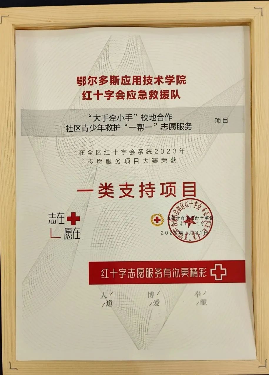 “大手牽小手”校地合作社區青少年救護“一幫一”項目是由學院團委領導、鄂爾多斯市紅十字會指導的學校紅十字會特色項目。主要進行初級救護知識普及、紅十字精神宣講、面向青少年開展系統及專業化的急救知識培訓、推動學校及其周邊社區的應急救護知識技能普及推廣、學校與社區聯合開展應急救護志愿服務,提高青少年應急救護知識技能以及自救互救能力。樹立人民至上、生命至上的理念,傳播人道博愛奉獻的紅十字精神。