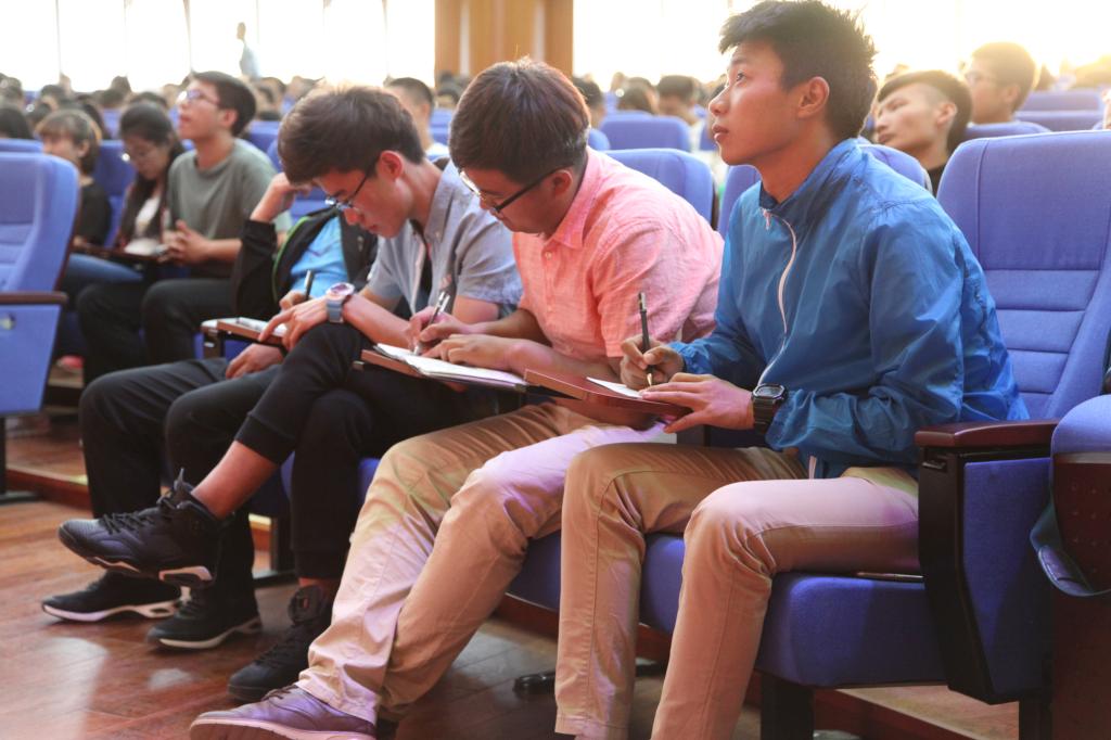 他以歷代中央領導同志對青年學生的寄語鼓勵在場師生,希望大家帶頭學習、錘煉自己,以執著的信念、優良的品德、豐富的知識、過硬的本領,勇敢擔負起歷史重任;不斷加強思想政治建設,牢筑信仰之基,補足精神之鈣,不忘初心,繼續前進,以實際行動展現理想信念的強大力量;希望大家把馬克思理論作為必修課,不斷堅定理想信念,保持對遠大理想和奮斗目標的認知和執著追求,不斷堅定道路自信、理論自信、制度自信、文化自信,志存高遠、腳踏實地,苦干實干;希望大家堅持把黨章作為加強黨性修養的根本標準,愛黨、憂黨、興黨、護黨,不斷增強紀律意識、規矩意識,心存敬畏,手握戒尺;希望大家以身作則,帶頭學習踐行社會主義核心價值觀,做“四講四有”的合格共產黨員。
