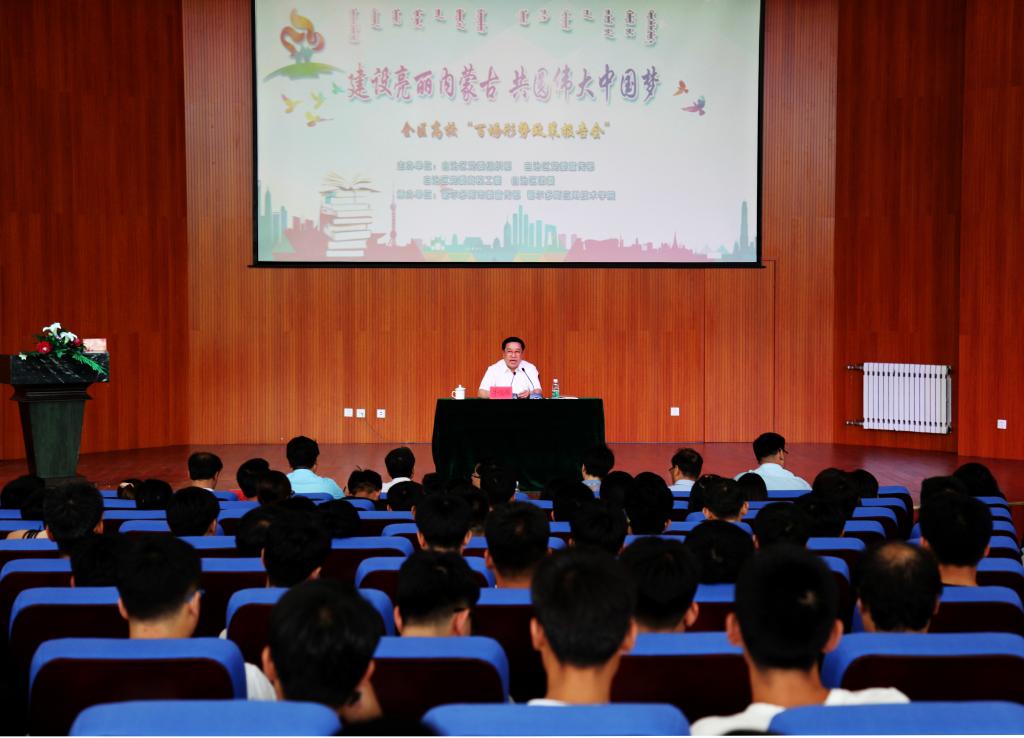 按照自治區(qū)黨委的總體部署,以“建設(shè)亮麗內(nèi)蒙古?共圓偉大中國(guó)夢(mèng)”為主題的“百場(chǎng)形勢(shì)政策報(bào)告會(huì)”正在全區(qū)各所高校展開(kāi)。這是我區(qū)全面貫徹落實(shí)習(xí)近平總書(shū)記在全國(guó)高校思想政治工作會(huì)議上重要講話精神、加強(qiáng)高校思想政治工作的具體行動(dòng),是教育引導(dǎo)廣大師生深入理解黨的路線方針政策、正確認(rèn)識(shí)中國(guó)發(fā)展大勢(shì)和自治區(qū)發(fā)展區(qū)情的有效途徑,是鼓舞激勵(lì)廣大青年學(xué)生堅(jiān)定理想信念、錘煉高尚品格,增強(qiáng)道路自信、理論自信、制度自信、文化自信的重要舉措,對(duì)于確保我區(qū)高校牢牢把握社會(huì)主義辦學(xué)方向,扎實(shí)辦好中國(guó)特色社會(huì)主義大學(xué),培養(yǎng)德才兼?zhèn)洹⑷姘l(fā)展的中國(guó)特色社會(huì)主義事業(yè)合格建設(shè)者和可靠接班人,具有重要意義。