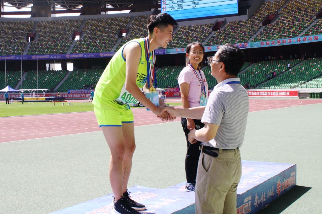 (學院黨委書記安勝利為馬超越同學頒發金牌)