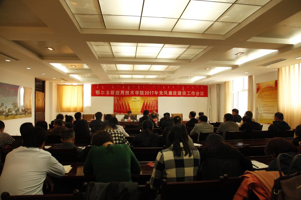 10月6日下午,我校在行政樓501會議室召開2017年黨風廉政建設工作會議,安排部署黨風廉政建設工作。康巴什校區、東勝校區領導班子及環節干部參加了會議。會議由校黨委副書記、校長姚德主持。