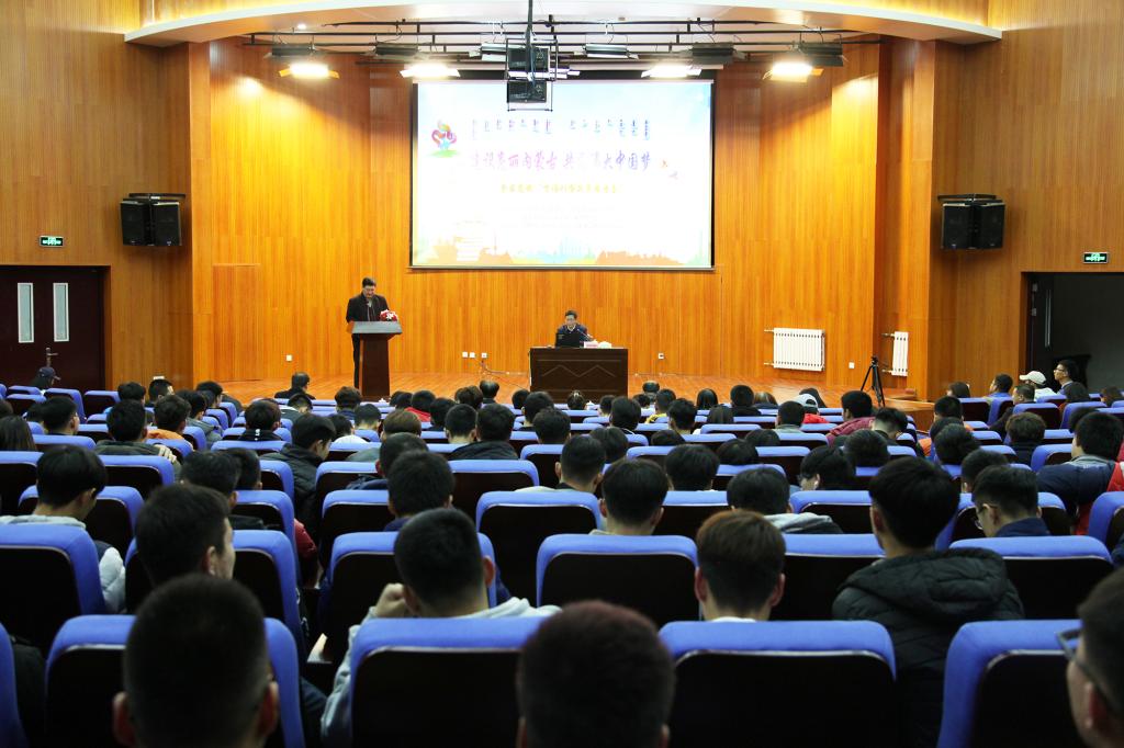 本次宣講報告會是鄂爾多斯應用技術學院2017年第三場“全區高校百場形勢政策報告會”。“全區高校百場形勢政策報告會”以“建設亮麗內蒙古·共圓偉大中國夢”為主題,是我區全面貫徹落實習近平總書記在全國高校思想政治工作會議上重要講話精神、加強高校思想政治工作的具體行動,是教育引導廣大師生深入理解黨的路線方針政策、正確認識中國發展大勢和自治區發展區情的有效途徑,是鼓舞激勵廣大青年學生堅定理想信念、錘煉高尚品格,增強四個自信的重要舉措。