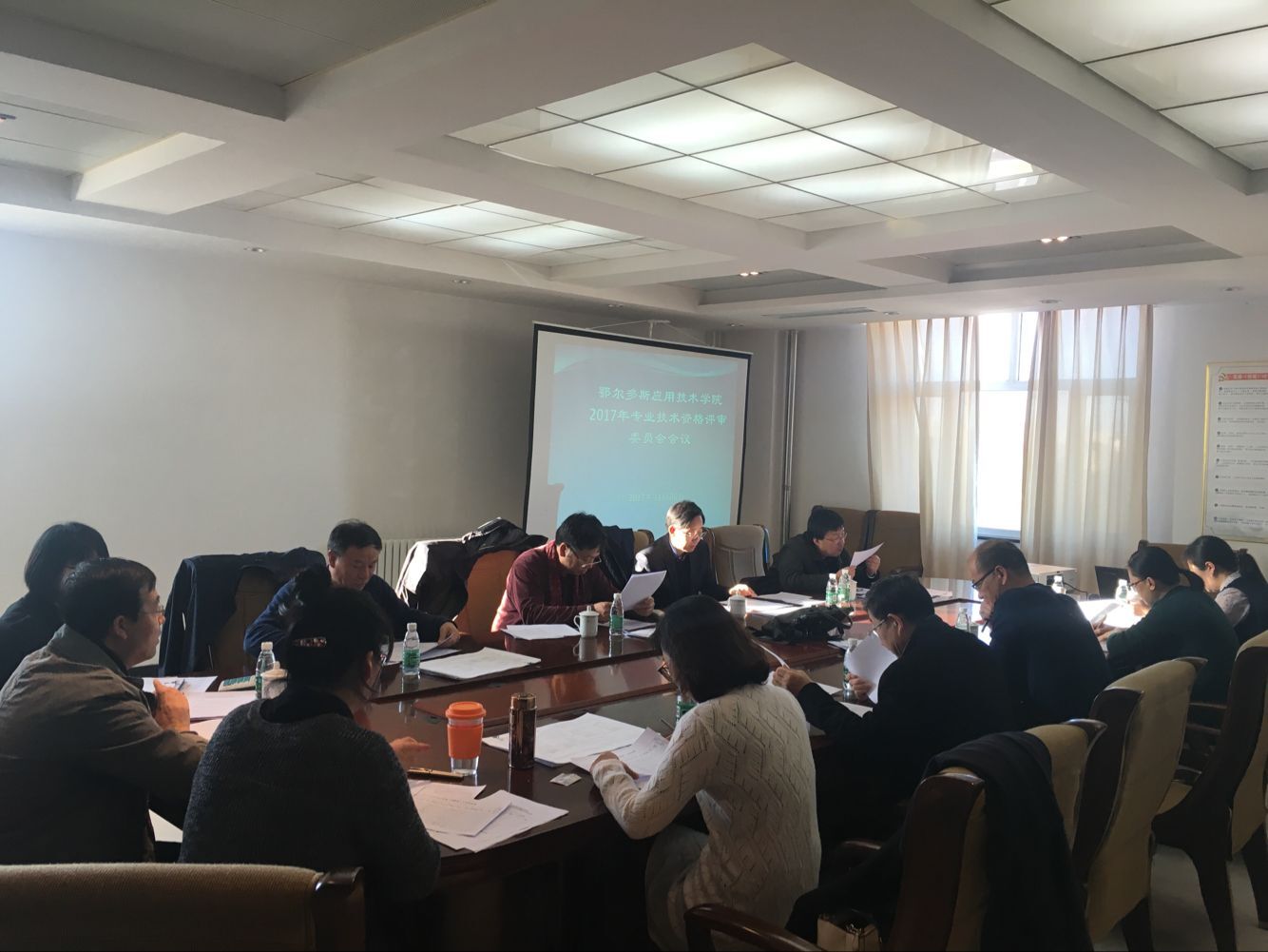 職稱評審工作關乎教師的切身利益,是教學、科研工作的一個指揮棒,也是人才隊伍建設、學科和專業建設等工作的重要抓手。2017年是我校自主開展專業技術職務任職資格評審的第一年,為做好評審工作,按照內人社發〔2017〕45號和內教教師函〔2017〕70號文件要求,我校成立了以姚德校長任組長的專業技術資格評審工作領導小組,制定了《鄂爾多斯應用技術學院2017年專業技術職務評審實施方案》《鄂爾多斯應用技術學院教師專業技術資格評審條件》,經教育教學能力考評、各院部組織專家初評、資格復審、校外同行專家評審、評審委員會評審等程序,圓滿完成了2017年專業技術職務任職資格評審的相關工作。