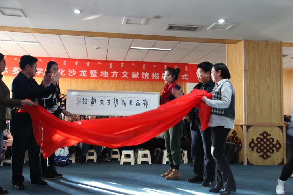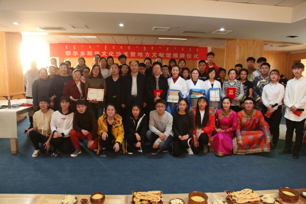 11月24日下午,由鄂爾多斯應用技術學院、鄂爾多斯市社會科學聯合會、鄂爾多斯學研究會主辦,鄂爾多斯學研究中心、學校管理學院、學校圖書館地方文獻館承辦的"用心點亮 書香傳承"鄂爾多斯學文化沙龍暨鄂爾多斯應用技術學院圖書館地方文獻館揭牌儀式在學校圖書館七樓順利舉行。鄂爾多斯市社科聯黨組書記、主席李洪波,副主席胡文華,鄂爾多斯市圖書館、鄂爾多斯職業學院圖書館、鄂爾多斯學研究會領導與我校領導出席本次活動。