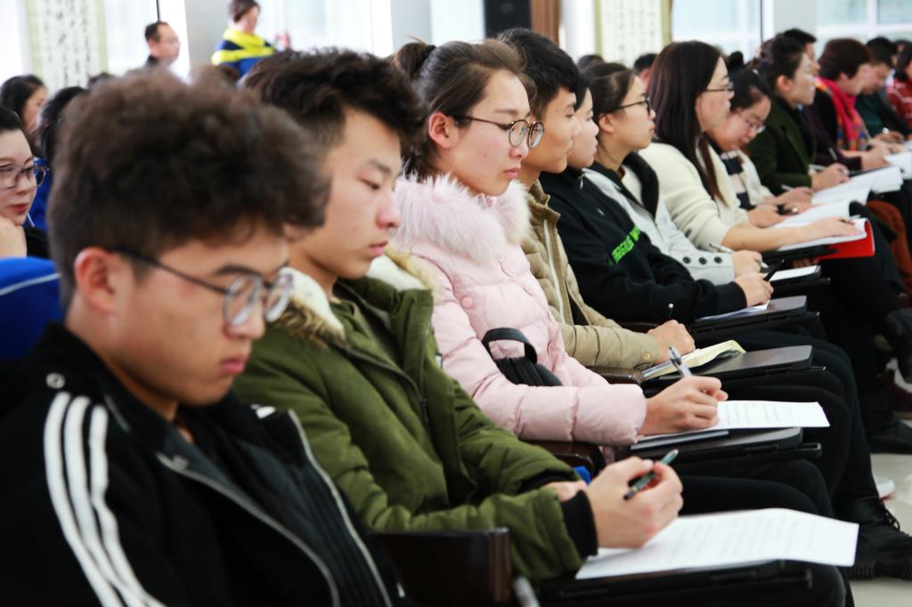 龔明珠從新成就、新時代、新思想、新變化、新目標五個方面對十九大精神進行了系統精準的剖析闡釋和深入淺出的宣傳講解。圍繞打造“五個一流”現代名城,暢談了鄂爾多斯未來的發展前景。并向廣大學子提出了以十九大精神為指引,做有理想、有本領、有擔當的新時代弄潮兒的殷切期望。