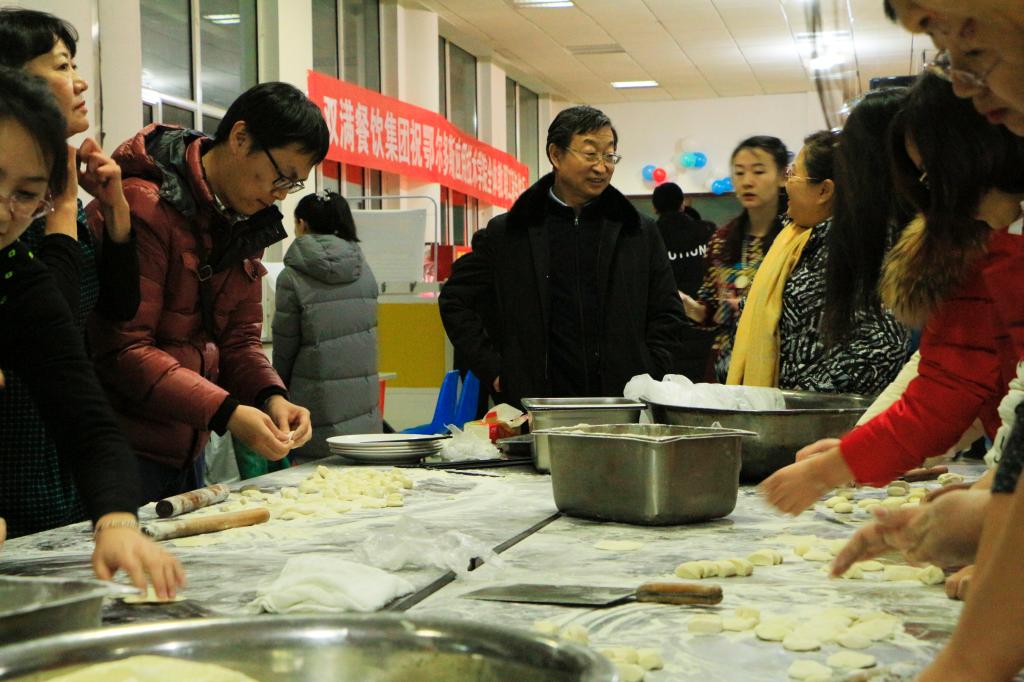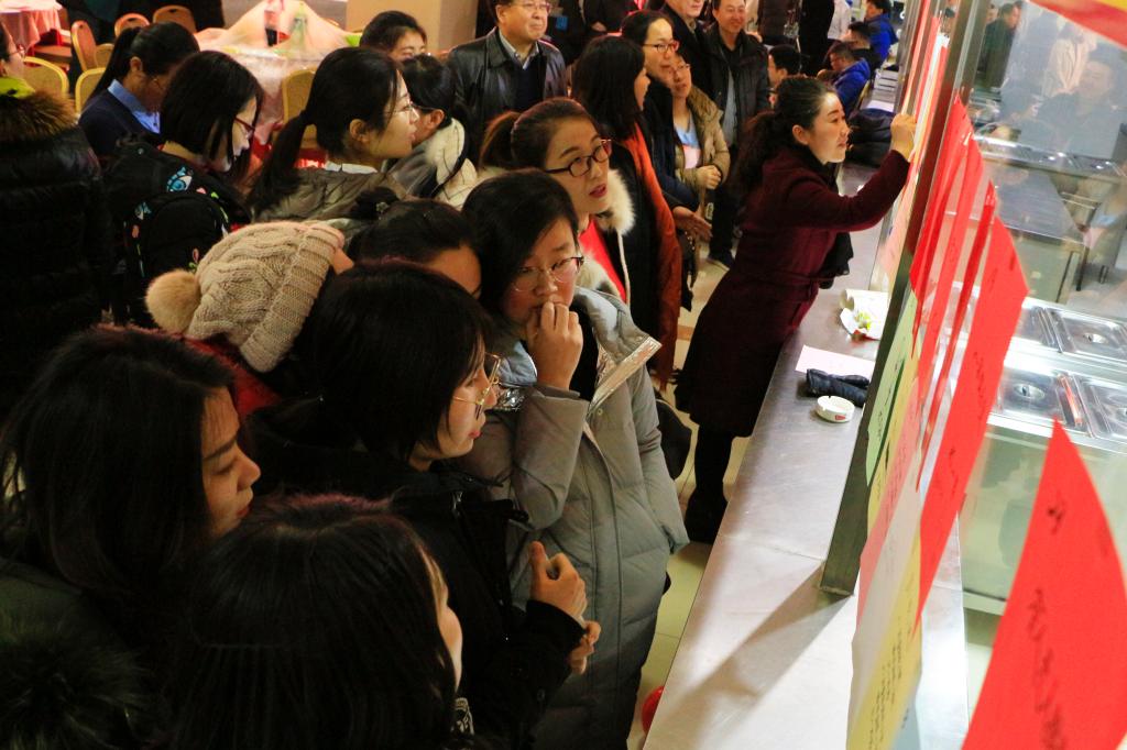 晚會前,校領導與教師們一起熱熱鬧鬧地包餃子,還開展了“猜謎語”活動。
