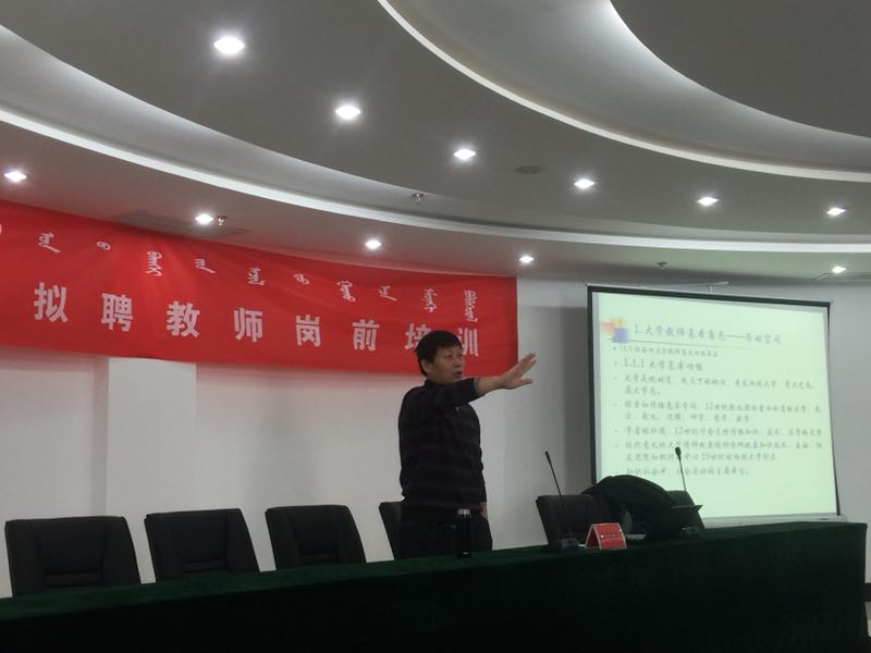 本次培訓形式為專題講座和分組學習討論兩種,上午進行專題講座,下午進行分組學習討論。1月8日、9日上午,內蒙古師范大學馬克思主義學院王志義教授、教育學部趙榮輝副教授分別對教師職業道德、教育法律法規進行了講解。8日下午,趙榮輝副教授組織了分組學習討論。9日下午,各學院組織了分組學習討論。10日、11日上午,內蒙古師范大學教育科學學院鐘建軍教授、王利教授分別講授了高等教育心理學、高等教育學有關內容。10日下午,王利、鐘建軍教授組織了分組學習討論。11日下午,各學院再次組織了分組學習討論。12日上午,清華大學公共管理學院教授劉慶龍與內蒙古大學數學科學學院教授巴達拉胡針對教學與科研能力方面進行了培訓。