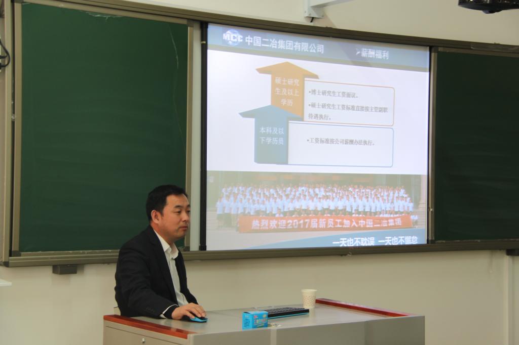 宣講會上,李海龍部長就集團目前所擁有的資質、所獲獎項、公司企業文化、產業結構、員工福利待遇等向學生們作了詳細的介紹。通過宣講,學生們對專業的發展和就業前景充滿了信心和力量。會后,學生們踴躍投遞了簡歷并希望能成為中國二冶的一名員工。