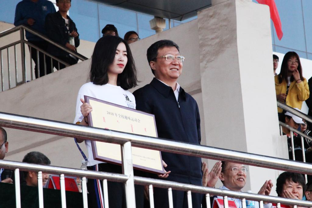 4月28日下午,鄂爾多斯應用技術學院、內蒙古大學鄂爾多斯學院2018年趣味運動會在學校體育場圓滿閉幕。學校黨委書記安勝利,黨委副書記、校長姚德,黨委副書記秦聞蘋,紀委書記李少東與各單位、部門負責人在主席臺就坐。全校師生參加了閉幕式。姚德校長主持閉幕式。