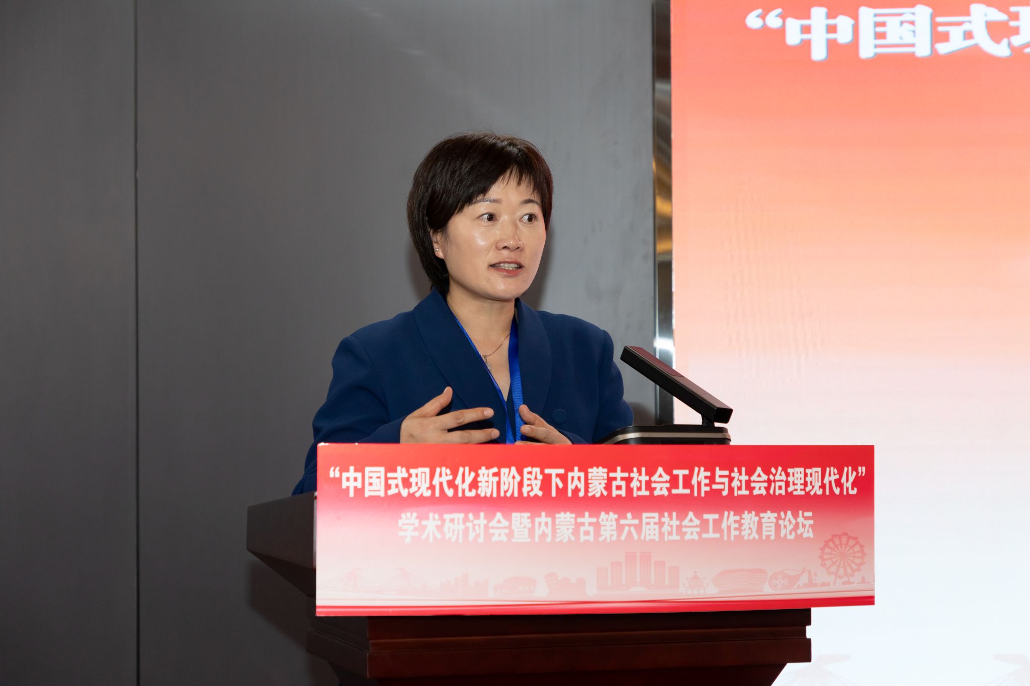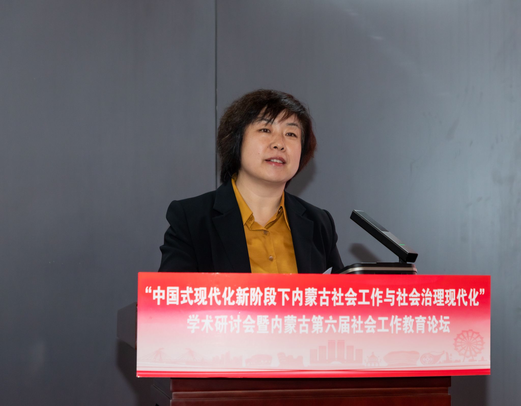 學(xué)校黨委委員、副校長金良出席會(huì)議并在致辭。她指出,社會(huì)工作是黨的工作的重要組成部分,做好社會(huì)工作人才培養(yǎng)對(duì)于提升基層治理效能、促進(jìn)社會(huì)和諧穩(wěn)定具有重要意義。本次論壇對(duì)于進(jìn)一步促進(jìn)內(nèi)蒙古社會(huì)工作教育的創(chuàng)新與發(fā)展具有重要推動(dòng)作用。希望通過本次論壇的舉辦,能夠進(jìn)一步加強(qiáng)學(xué)校與兄弟院校的交流合作,不斷提升社會(huì)工作人才培養(yǎng)質(zhì)量。