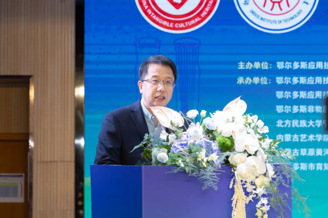 鄂爾多斯市文化和旅游局副局長劉玉飛,北方民族大學特聘教授張景明分別致辭,對論壇的召開表示了熱烈祝賀,強調了非遺傳承與發展在新時代發展的重要意義,指出非遺作為中華優秀傳統文化的瑰寶,其保護傳承與現代應用對于推動文化創新、促進文旅產業融合發展以及構建中華民族現代文明具有不可替代的作用,并希望通過此次論壇,能夠匯聚各方智慧,形成非遺保護傳承的強大合力,探索出更多切實可行的非遺傳承與發展路徑。