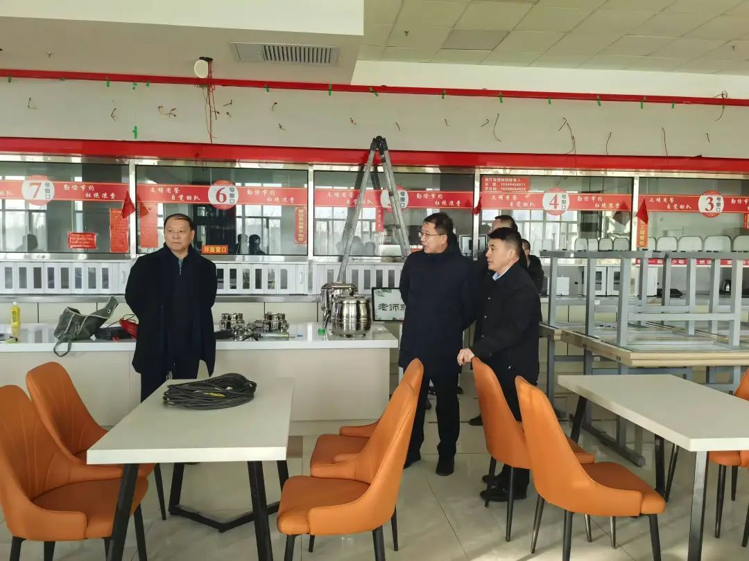 為確保新學期全校師生學習、工作和生活的順利開展,2月13日下午,黨委副書記、校長宮箭,學校黨委委員、副校長劉建一行前往學校施工現場,實地查看新建食堂、會議室等項目的建設情況,深入了解并督促相關部門按進度推進。