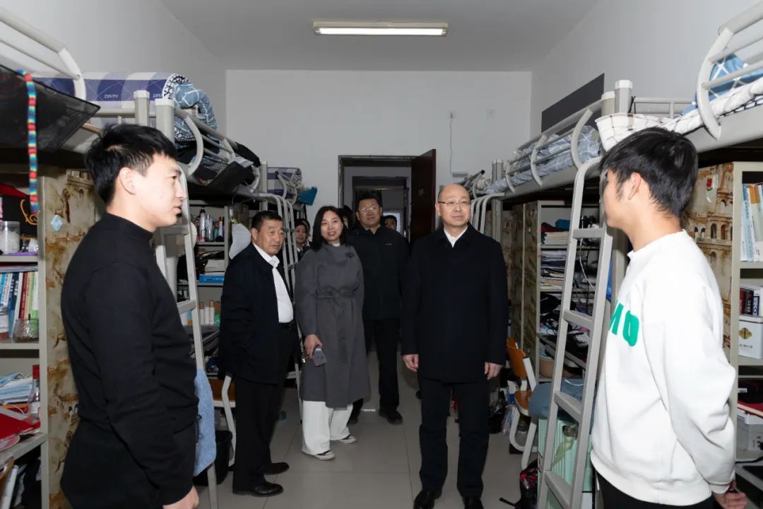 學校領導宮箭、李少東、劉建一行深入東勝校區(qū)圖書館、食堂、學生公寓、東側院墻、實驗樓、附屬醫(yī)院等地,檢查指導校園安全維護、學生日常管理、基礎設施建設與改造等重點工作,深入了解各重點環(huán)節(jié)的值班值守、用水用電、消防安全、食品安全、實驗室安全、施工安全、監(jiān)控防范等方面情況,并給出指導意見。