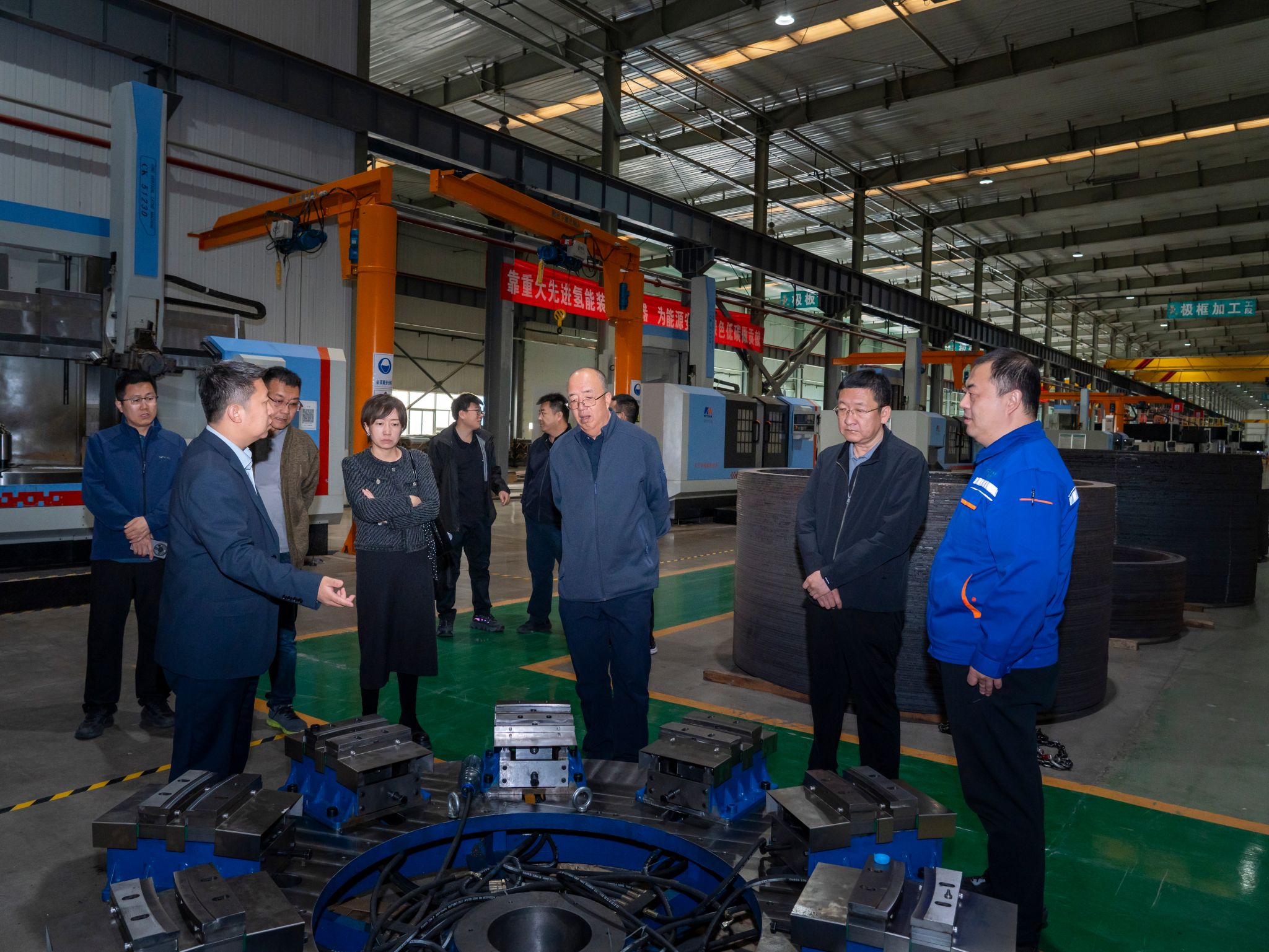 隨后,調(diào)研組來到位于高新技術(shù)產(chǎn)業(yè)園區(qū)的我校氫能裝備合作企業(yè)鄂爾多斯市國盛利華制氫設(shè)備有限公司,了解了電解制氫設(shè)備及其附屬設(shè)備的研制銷售及中試等情況,并表示學(xué)??删劢辜夹g(shù)研發(fā)與產(chǎn)業(yè)鏈協(xié)同,深化校企人才共育,借力區(qū)域政策打造氫能裝備示范標(biāo)桿。