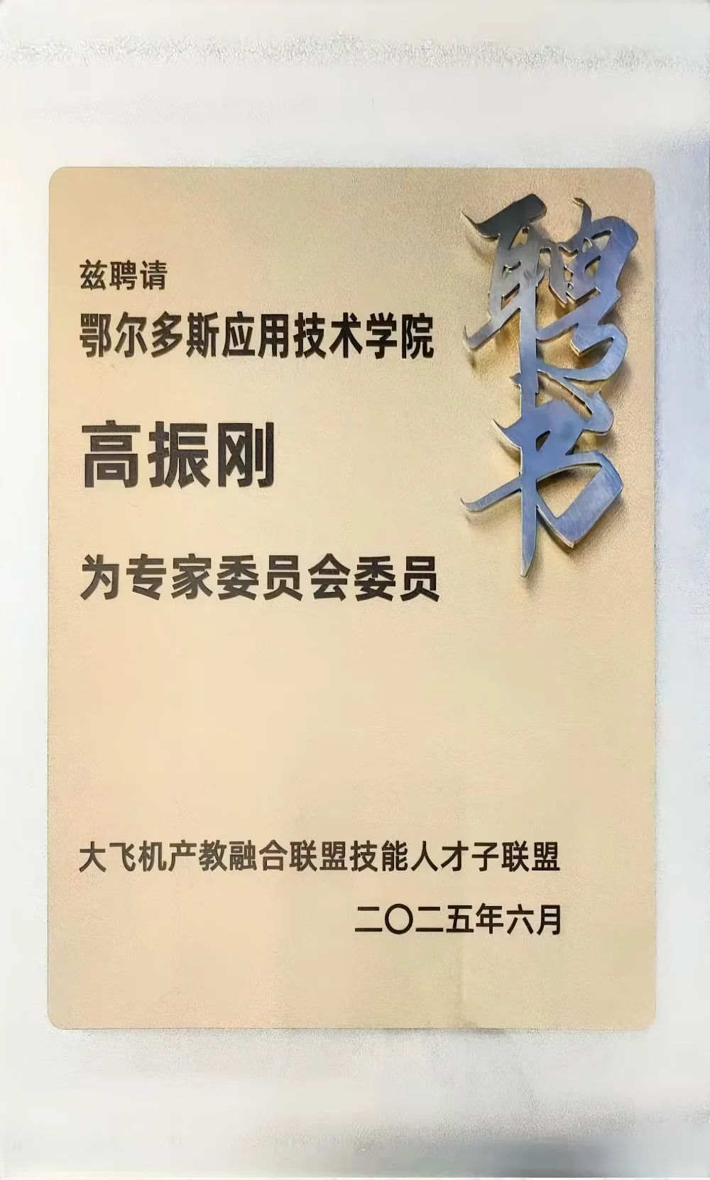 在聯盟大會上,學校被授予"首批民機總裝制造現場工程師培訓基地"稱號,標志著學校在大飛機技術人才培養領域獲得行業認可。大飛機學院院長高振剛受聘為大飛機產教融合技能人才聯盟專家委員會委員。