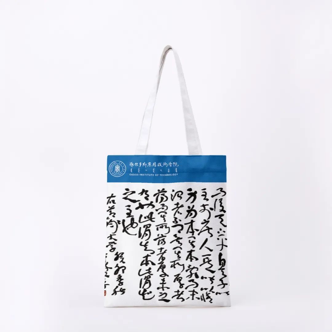 環保袋將學校黨委副書記秦聞蘋手書的《大學》核心修身心法“知止定靜安慮得”與“物有本末,事有終始”的智慧箴言印在背包上,既傳承了國學精髓,又為畢業生注入了終身受用的心靈羅盤。這不僅是紀念品,更是一份凝練東方智慧的人生指南。
