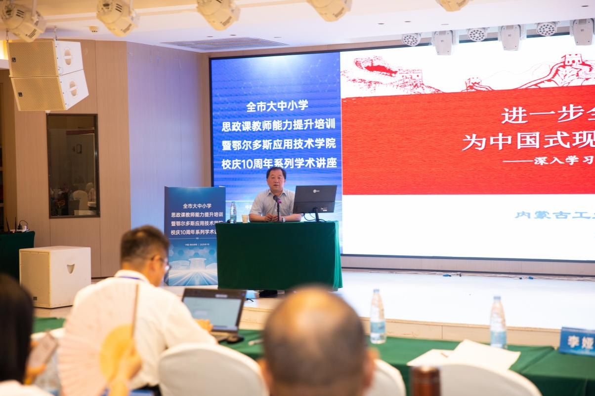 7月5日—6日,學校成功舉辦全市大中小學思政課教師能力提升培訓暨校慶十周年系列學術報告。學校黨委副書記秦聞蘋,鄂爾多斯市教育體育局副局長張燕出席活動,全市大中小各學段140余名思政課教師代表齊聚一堂,共同探討思政教育創新路徑。
