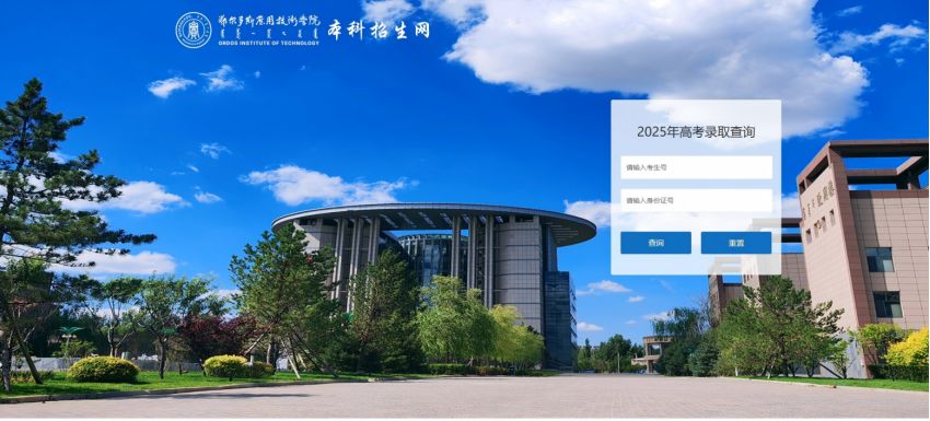 第一步:登錄鄂爾多斯應用技術學院本科招生網(https://zs.oit.edu.cn/),點擊“錄取查詢”。