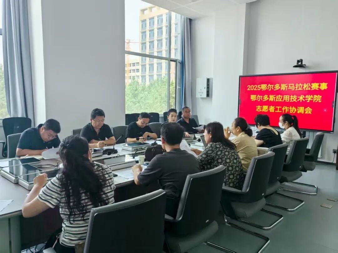 近日,學校召開2025鄂爾多斯馬拉松志愿者工作協調會。學校黨委副書記秦聞蘋出席會議,團委、黨委學生工作部、后勤管理處、黨委保衛工作部及各學院負責人參加會議。