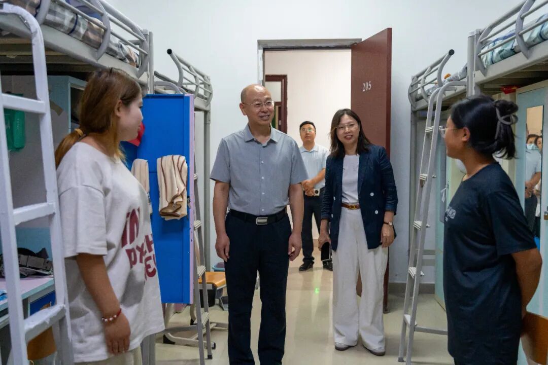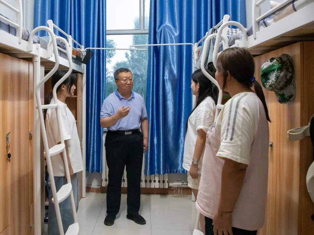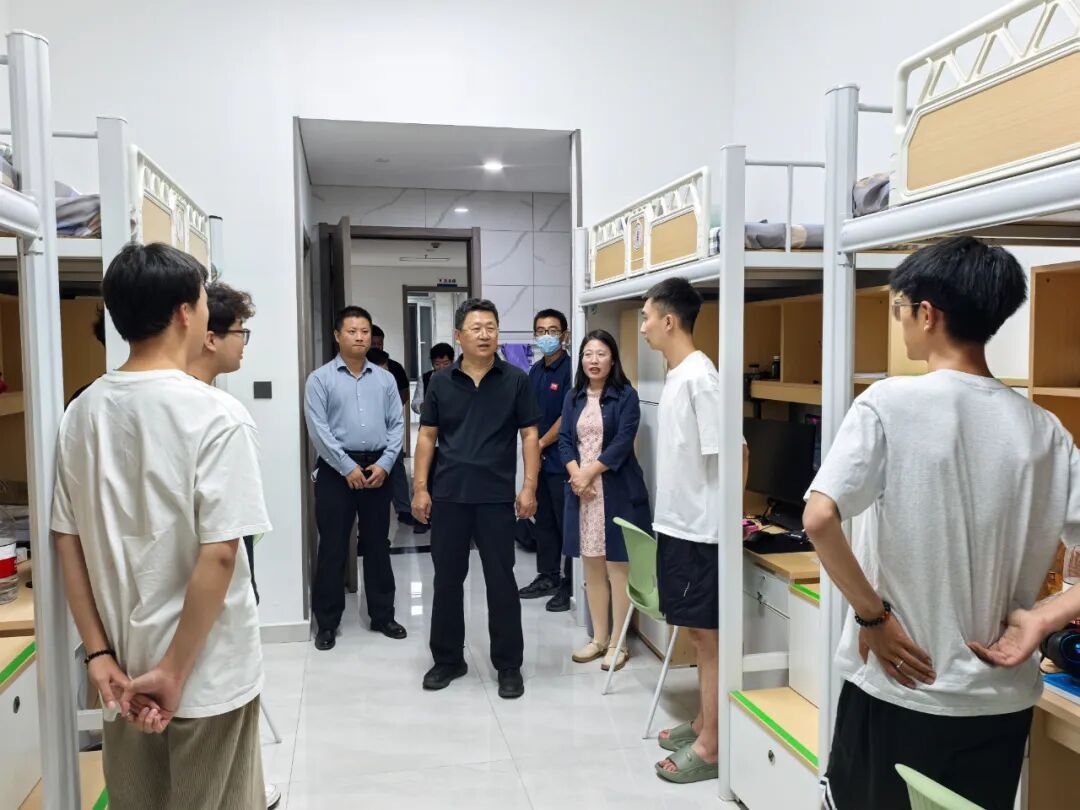 “歡迎新同學”,學校領導李向東、宮箭、秦聞蘋、李少東、劉建,來到康巴什、東勝兩校區新生報到現場并走進新生宿舍,熱情歡迎2025級新生,了解新生報到、入住、生活情況,誠摯慰問迎新工作人員。