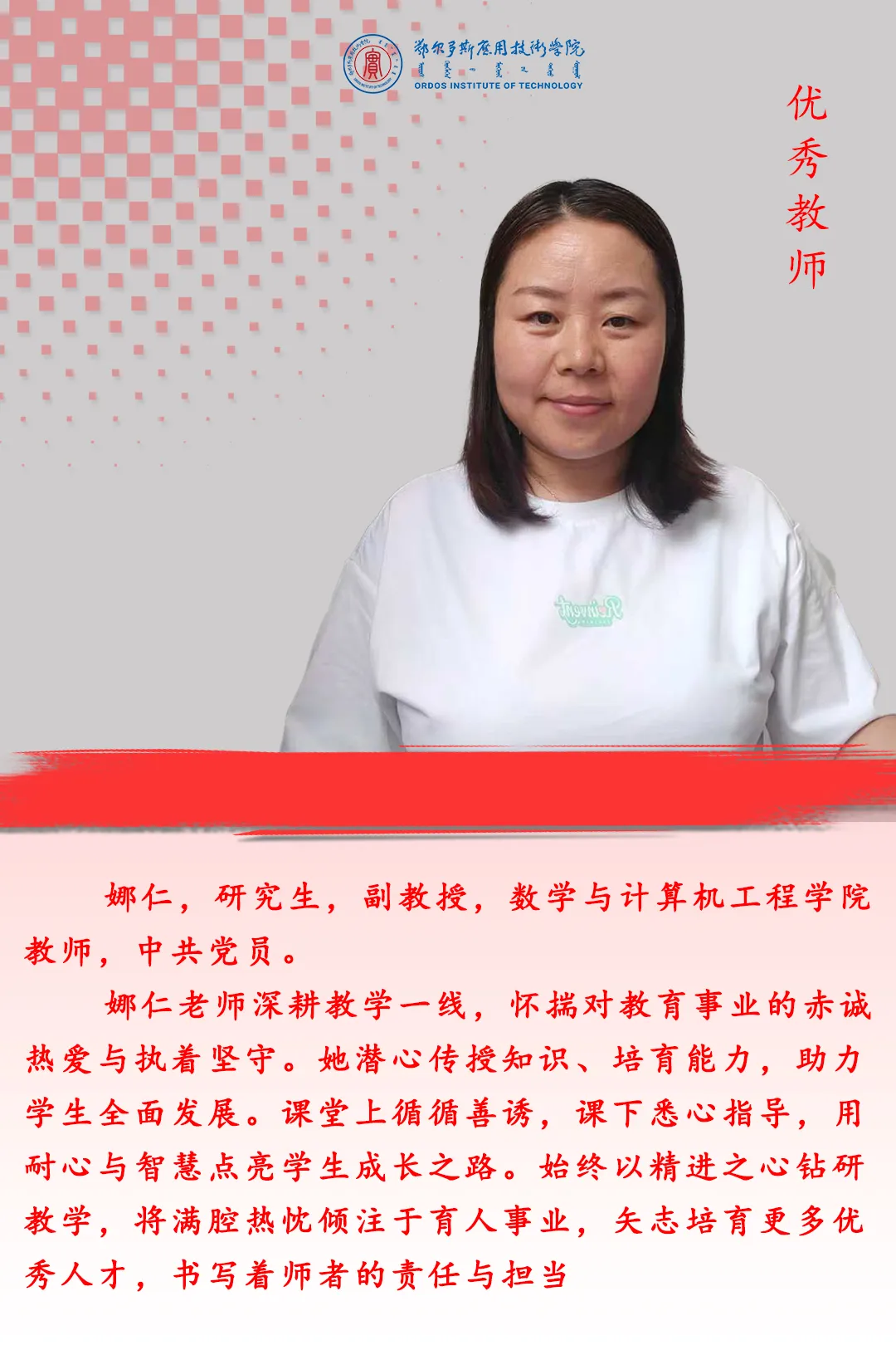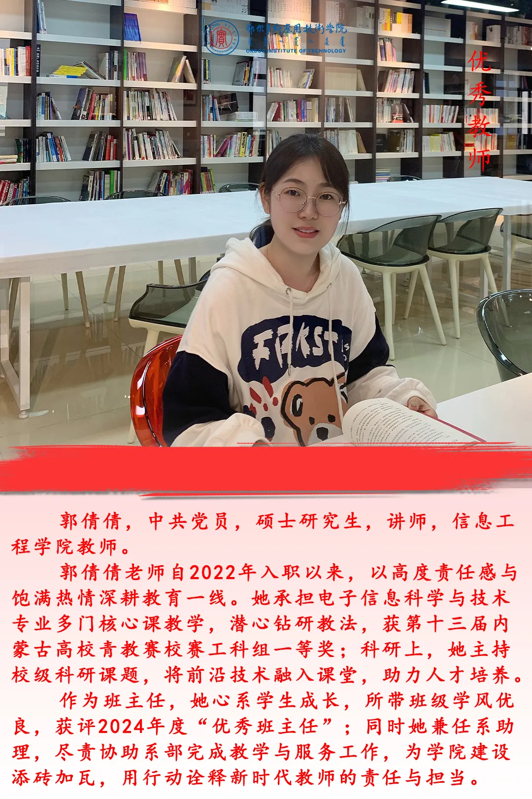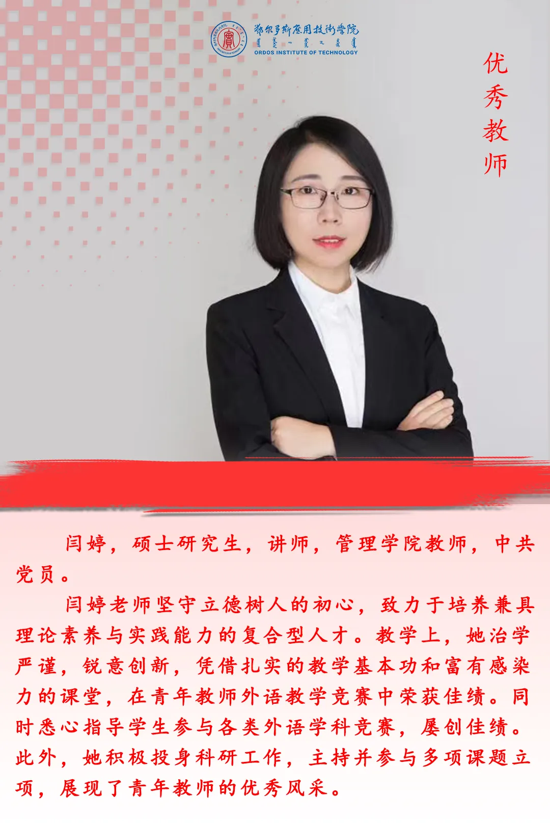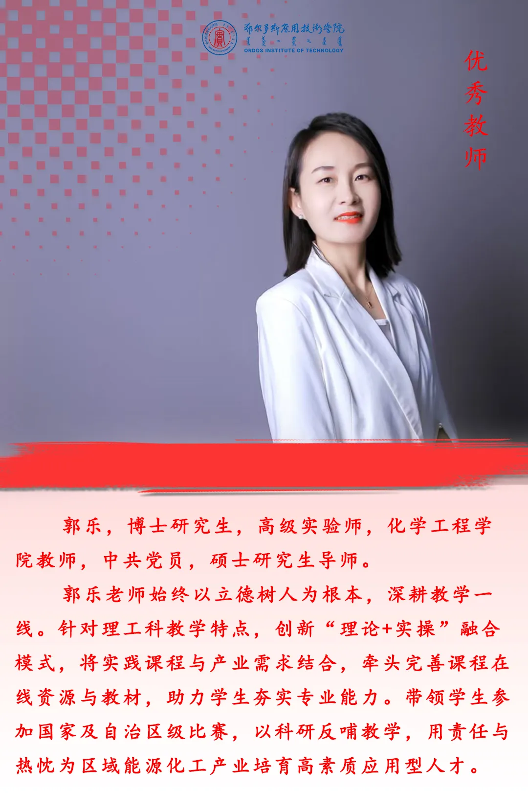 在第41個(gè)教師節(jié)來臨之際,學(xué)校將對(duì)先進(jìn)集體、先進(jìn)個(gè)人進(jìn)行表彰,以弘揚(yáng)尊師重教風(fēng)尚,激勵(lì)廣大教師牢記育人初心、擔(dān)當(dāng)育人使命。今天我們一起領(lǐng)略優(yōu)秀教師的風(fēng)采。