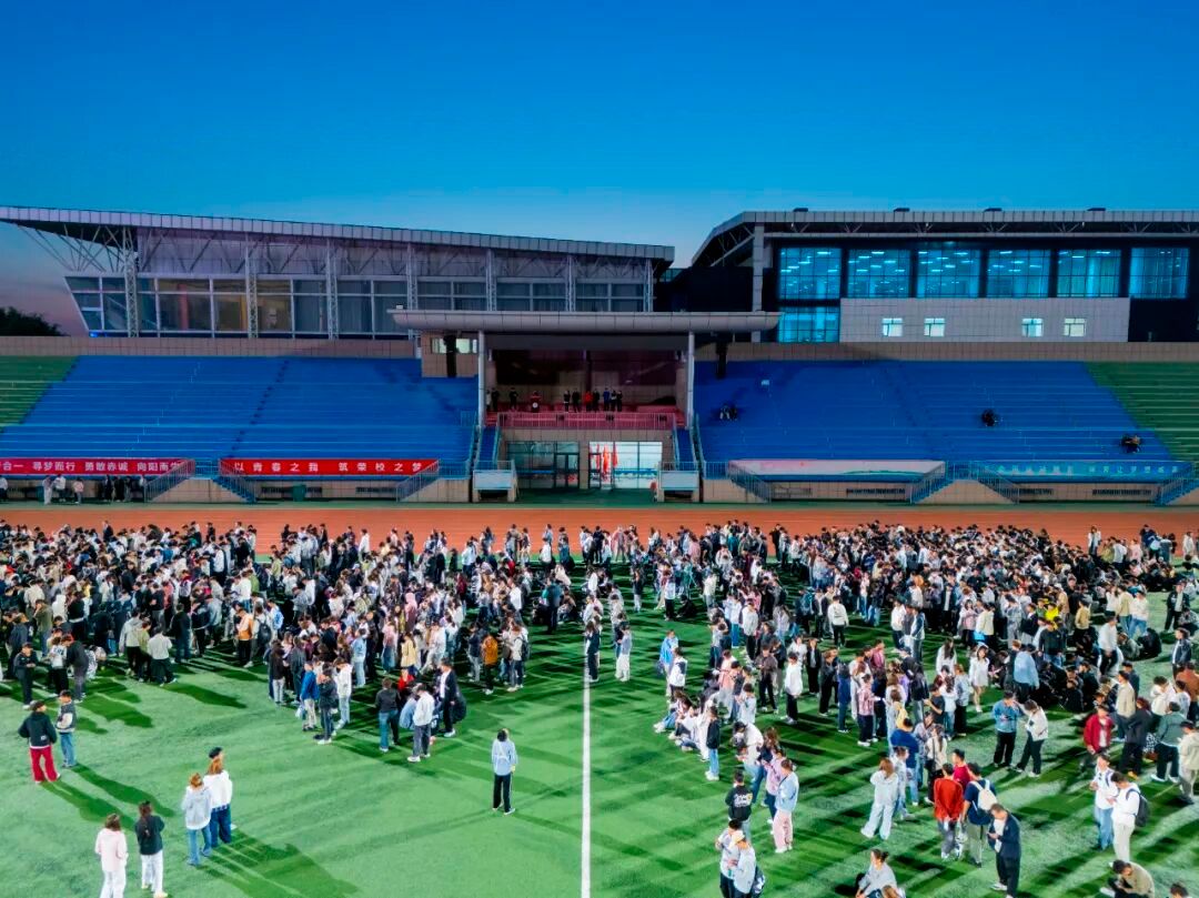 理論宣講結束后,全體體育教師組織近3000名新生以學院為單位,展開了一場活力十足的校園夜跑。為兼顧體驗與安全,跑步分兩種方式進行。一半同學繞校園路跑,感受秋夜校園的氛圍;另一半則在標準田徑場上暢快奔跑。其中,東勝校區全部為繞校園跑步。