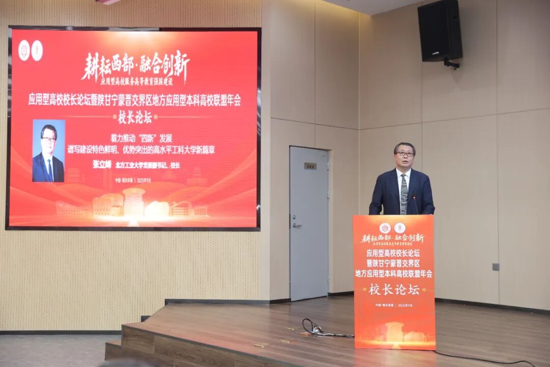 學校黨委副書記、校長宮箭以《涵養地方特色培育應用英才——譜寫應用型大學建設的鄂爾多斯篇章》為題作報告,圍繞黨建領航、產教融合、科研創新與應用型特色等,系統介紹了我校的發展歷程與辦學成就。北方工業大學黨委副書記、校長張立峰,東莞理工學院黨委副書記李忠紅,陜西理工大學黨委副書記、校長王磊,榆林學院黨委副書記、校長康偉圍繞特色發展、產教融合及創新驅動等內容作主題報告。